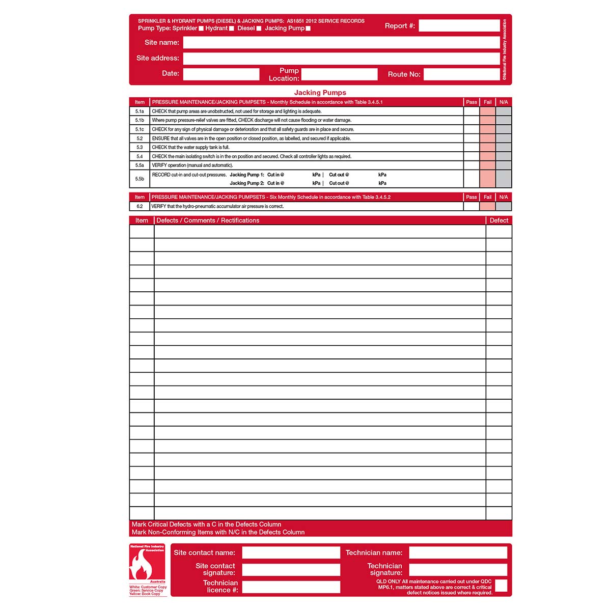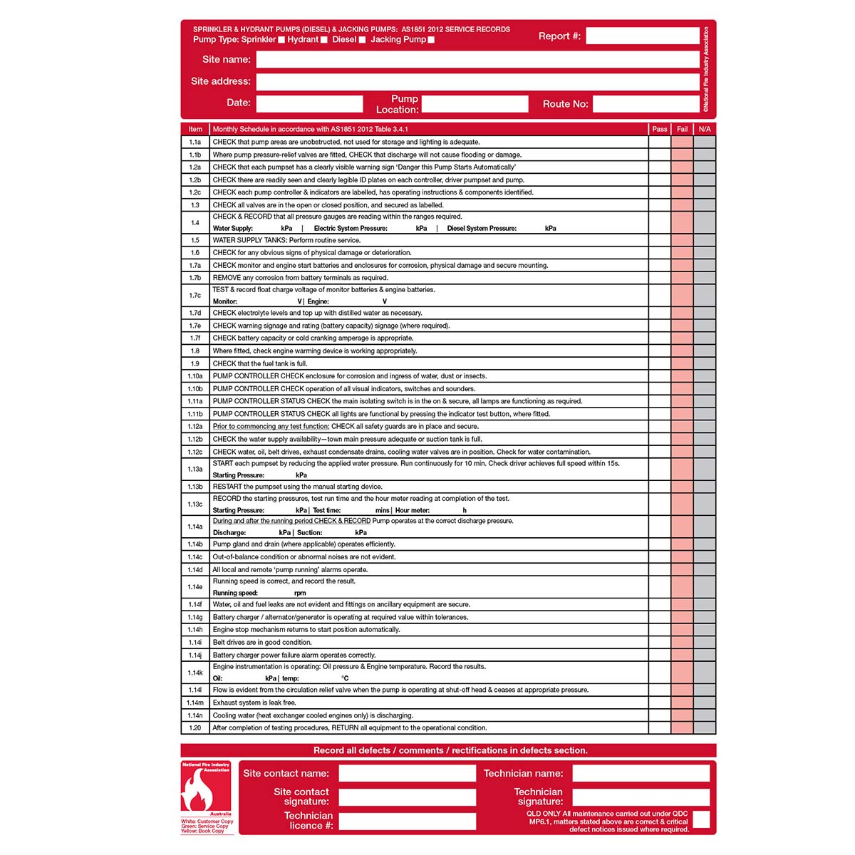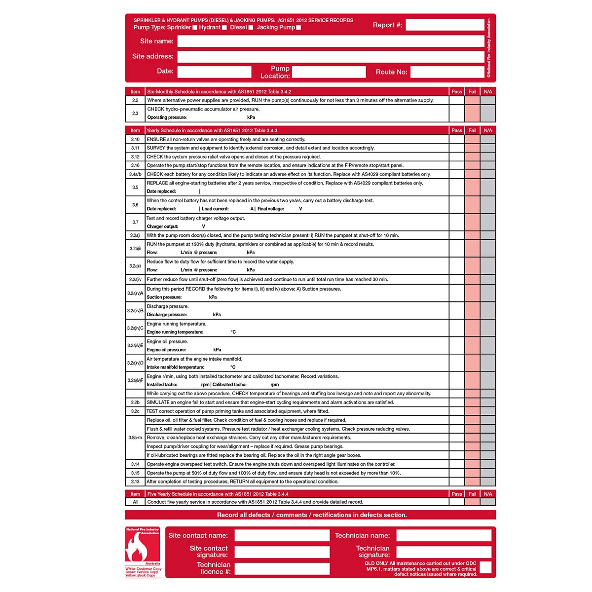 AS1851-2012 Service Record, including Amendment 1. Designed for use over a 2 year period.