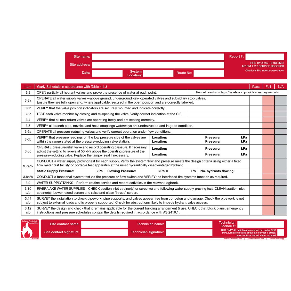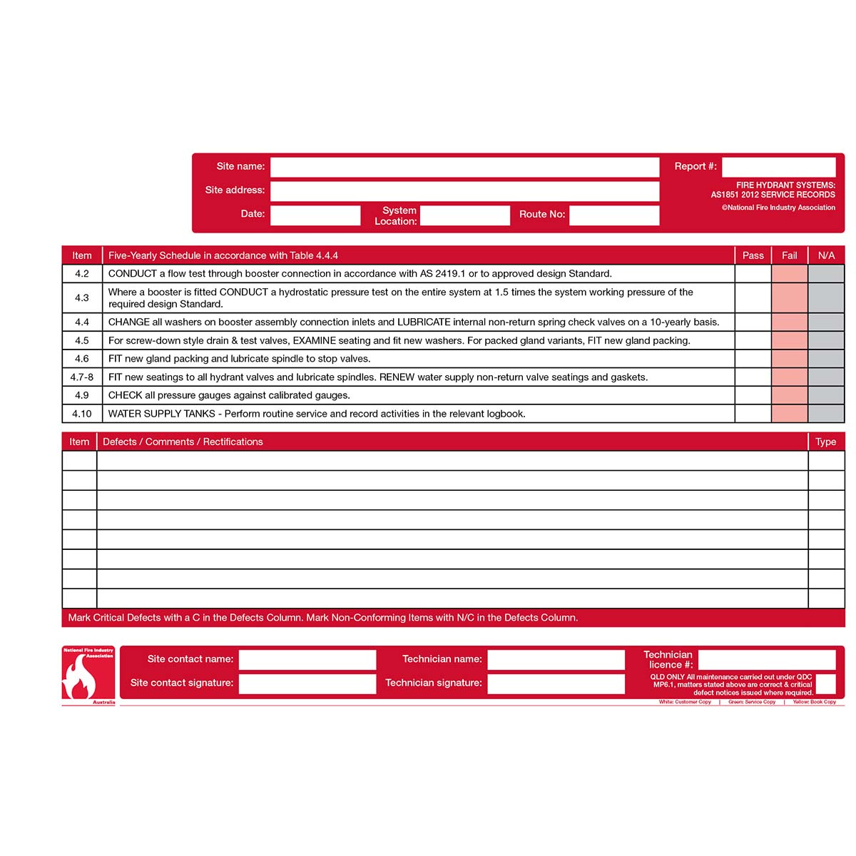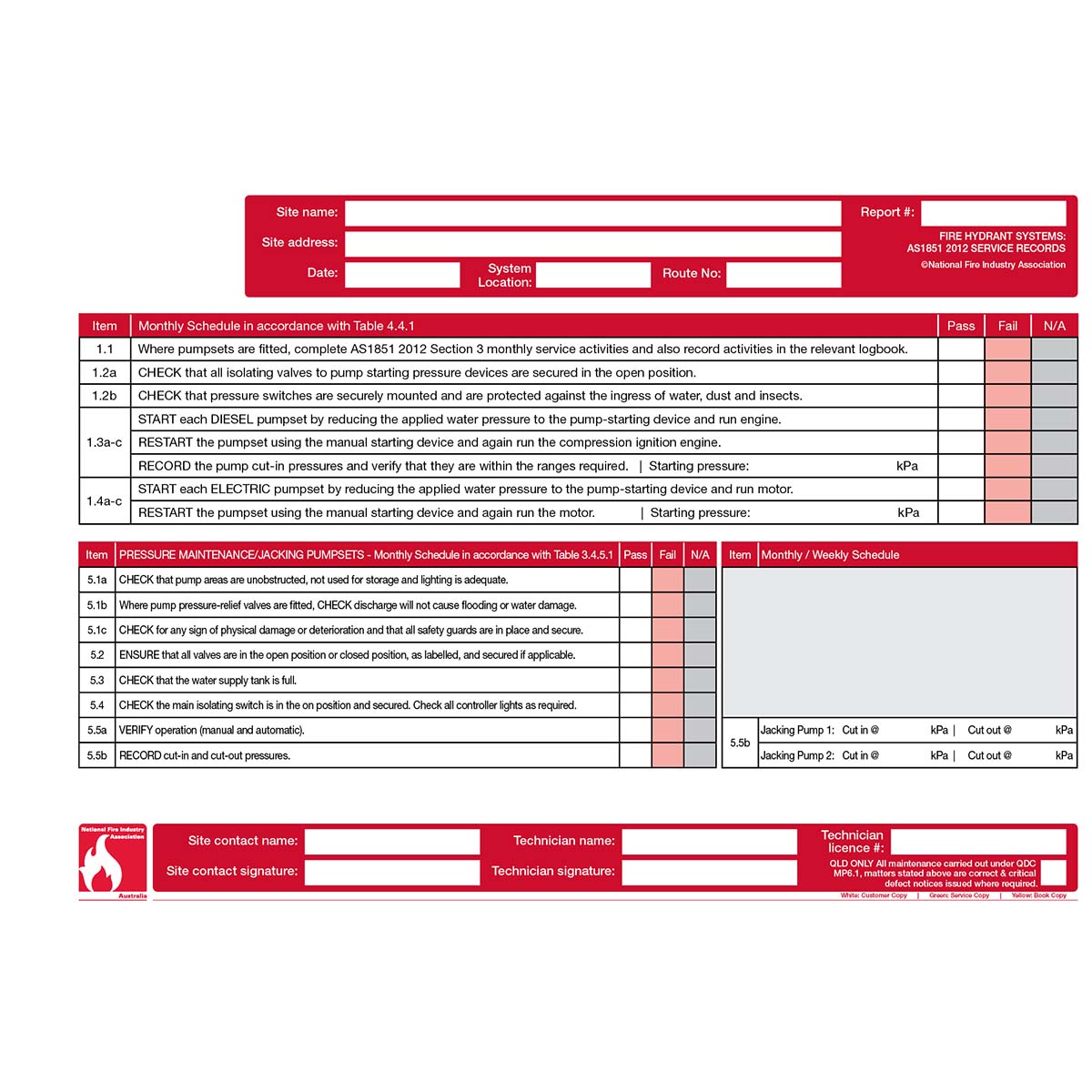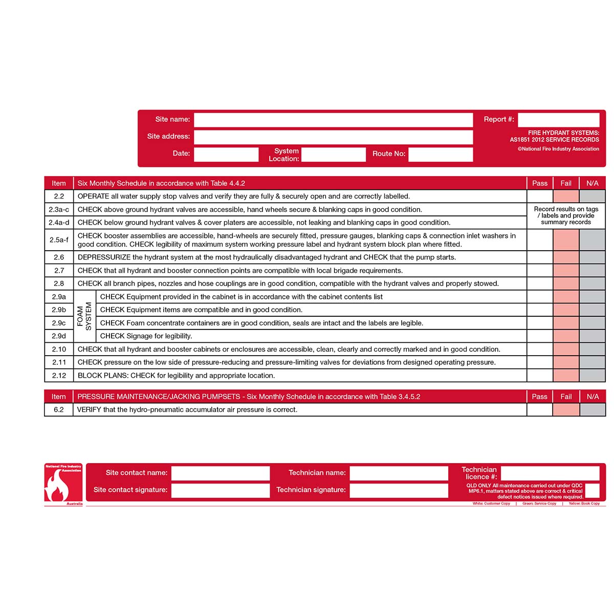 AS1851-2012 Service Record, including Amendment 1. Designed for use over a 2 year period.