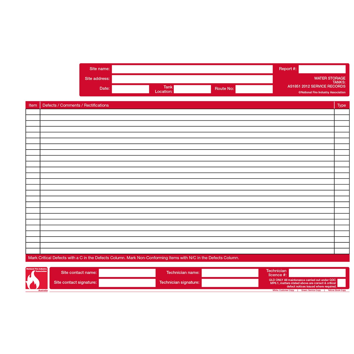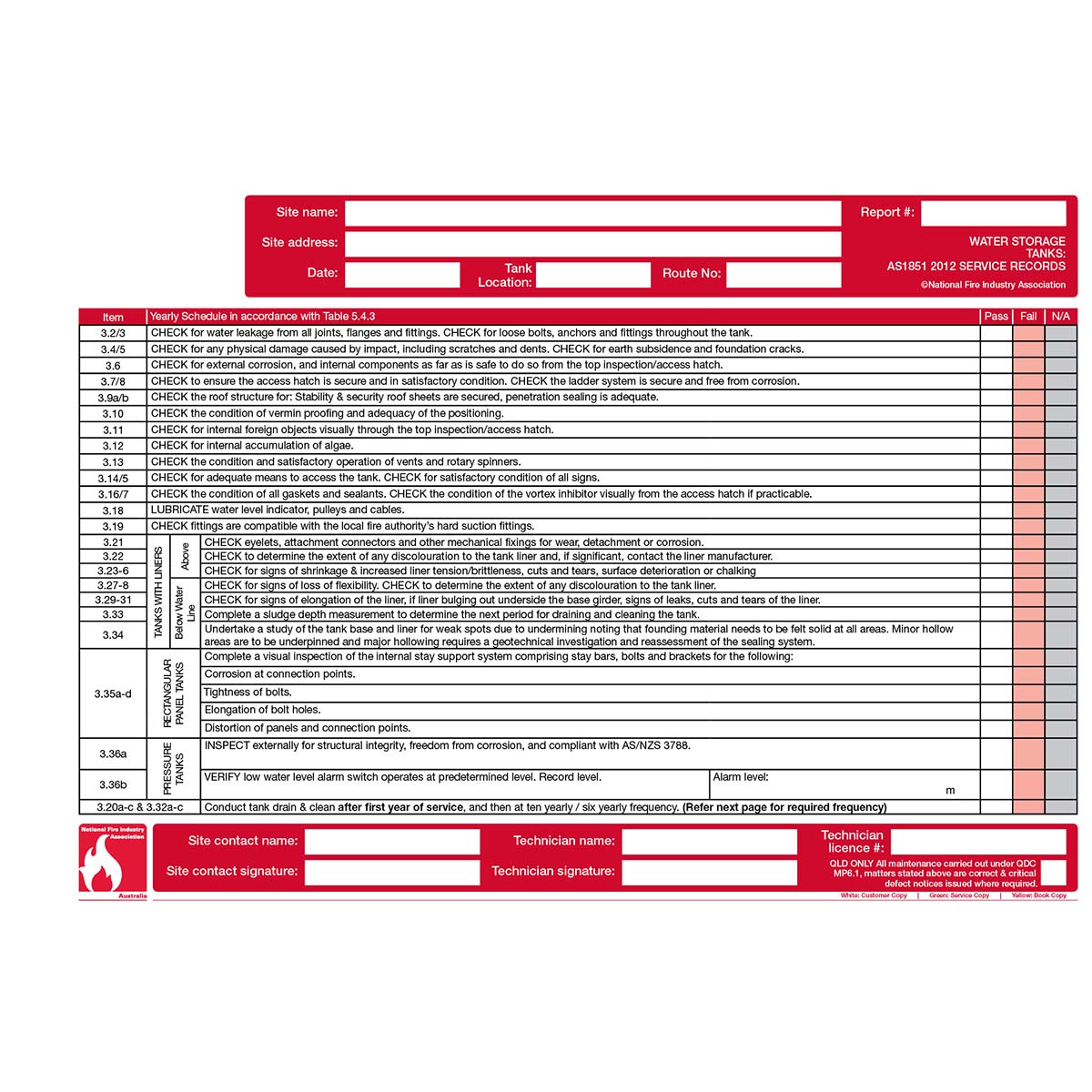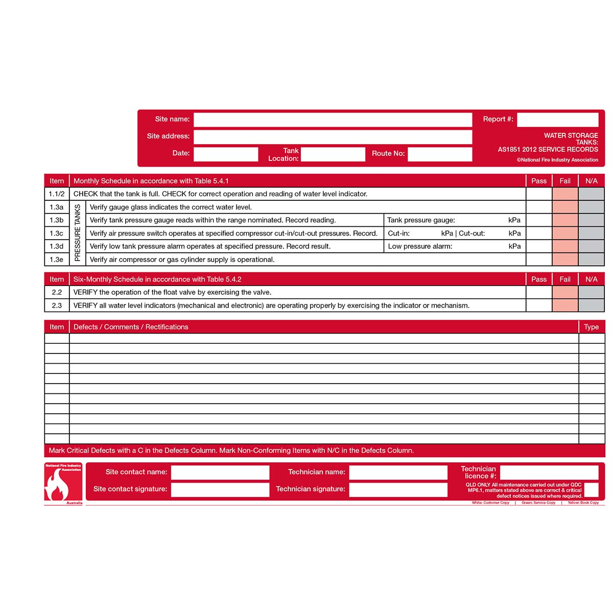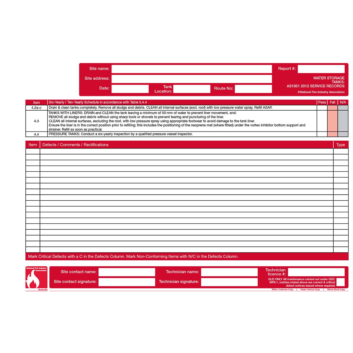 AS1851-2012 Service Record, including Amendment 1. Designed for use over a 2 year period.