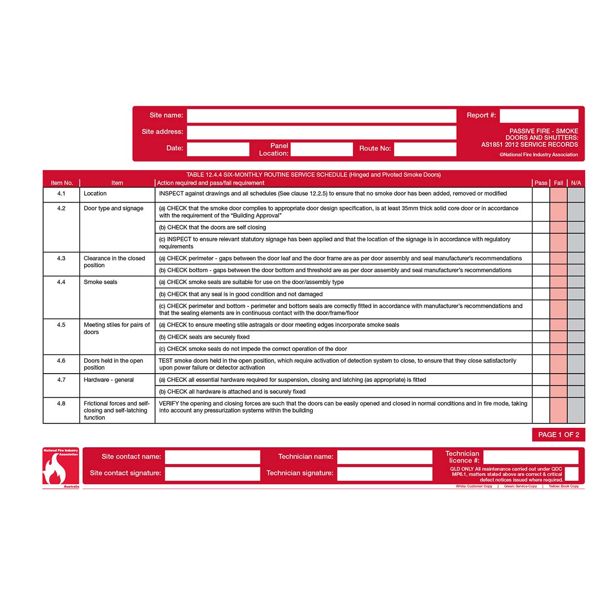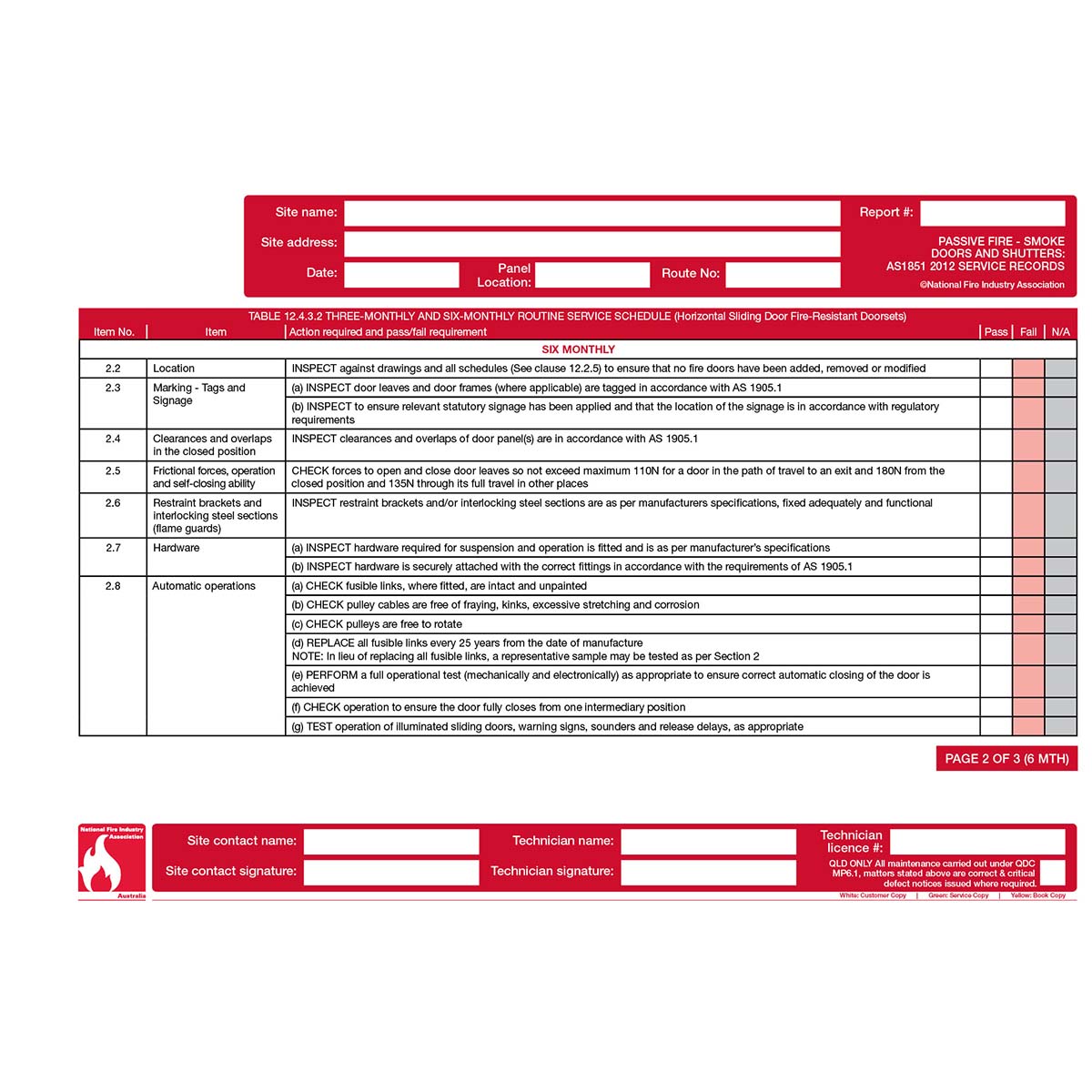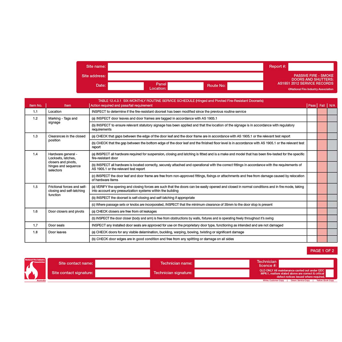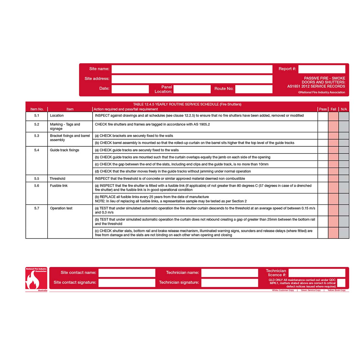 AS1851-2012 Service Record, including Amendment 1. Designed for use over a 2 year period.