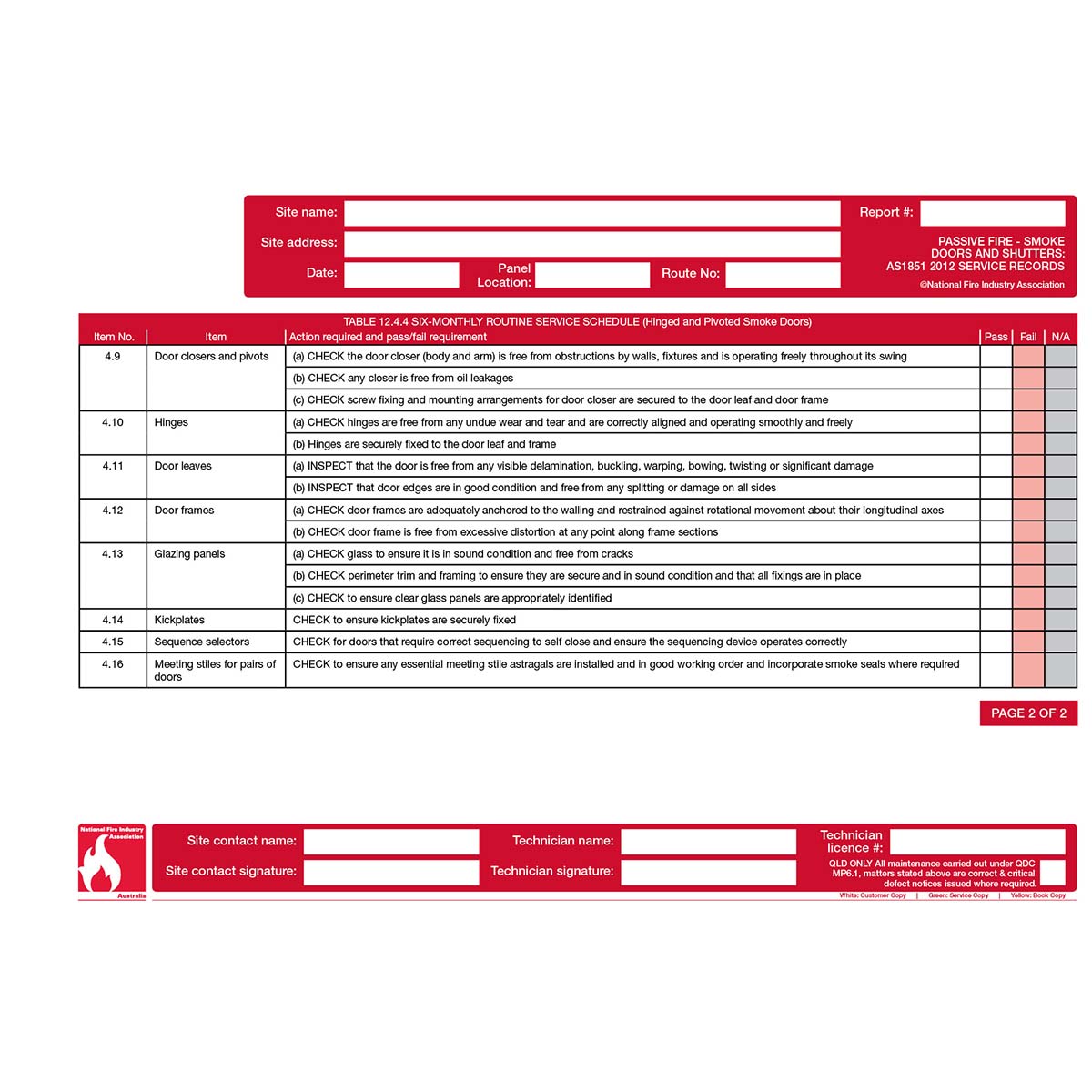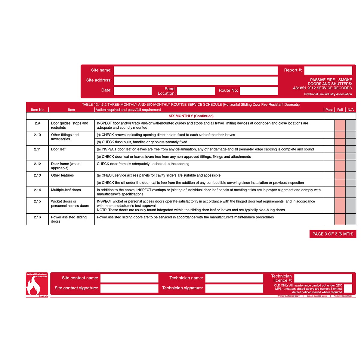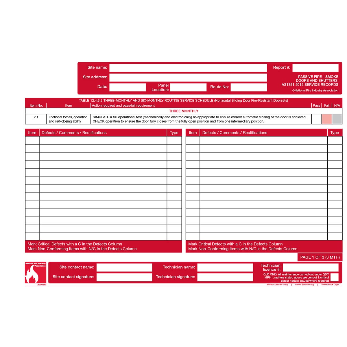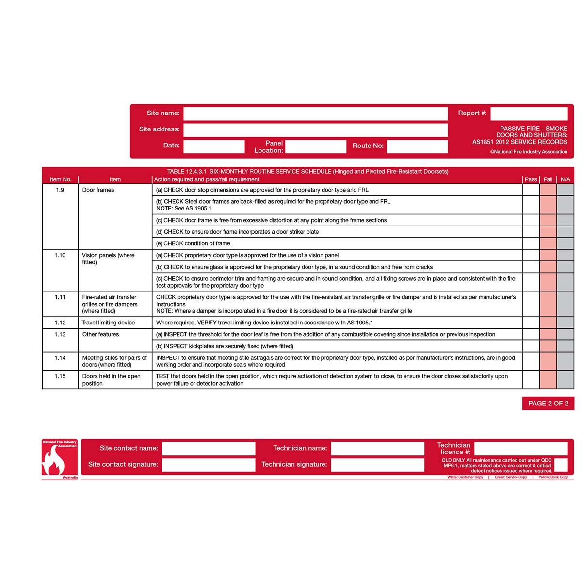 AS1851-2012 Service Record, including Amendment 1. Designed for use over a 2 year period.